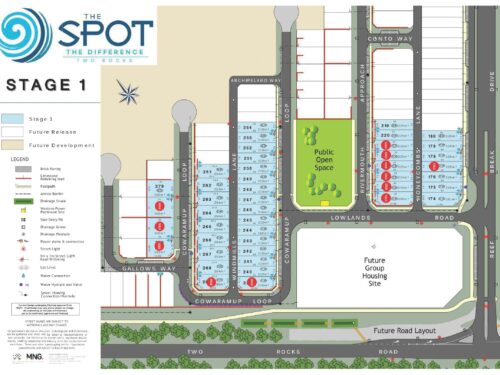 Welcome to the coastal lifestyle in The Spot estate, located in the well established suburb of Two Rocks. The perfect place to get away from the hustle and bustle of Perth with white sandy beaches only 600 metres away from the fully serviced blocks available to choose from varying in size from 168m2 (approx) to 281m2 (approx).
